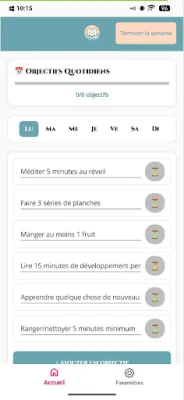 Commandements - Coach Habitude மூலம் உங்கள் தினசரி வழக்கங்களை ஒரு சாகசமாக மாற்றுங்கள்! உங்கள் சொந்த விதிகளை உருவாக்கி, தினசரி அல்லது வாராந்திர பழக்கங்களை எளிதாகக் கண்காணிக்கவும். ஒவ்வொரு வெற்றியையும் மெய்நிகர் வானவேடிக்கையுடன் கொண்டாடுங்கள். நவீன இடைமுகம், தனிப்பயன் அறிவிப்புகள், முன்னேற்றப் பட்டியல்கள் மற்றும் விரிவான புள்ளிவிவரங்களுடன் உங்கள் இலக்குகளை அடையுங்கள்.