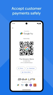 வணிக உலகில் உங்கள் பணப்பரிமாற்றங்களை மேம்படுத்த, Google Pay for Business ஒரு சக்திவாய்ந்த தீர்வாகும். Google இன் அசைக்க முடியாத நம்பகத்தன்மையுடன், லட்சக்கணக்கான வாடிக்கையாளர்களிடமிருந்து விரைவான மற்றும் பாதுகாப்பான பேமெண்ட்களைப் பெற இது உங்களுக்கு உதவுகிறது. 80க்கும் மேற்பட்ட BHIM UPI பயன்பாடுகளைப் பயன்படுத்தும் பயனர்கள், Google Pay for Business மூலம் உங்கள் வணிகத்திற்கு எளிதாகப் பணம் செலுத்த முடியும், இதனால் உங்கள் வணிக வளர்ச்சிக்கு புதிய வழிகள் திறக்கப்படும்.